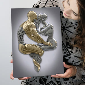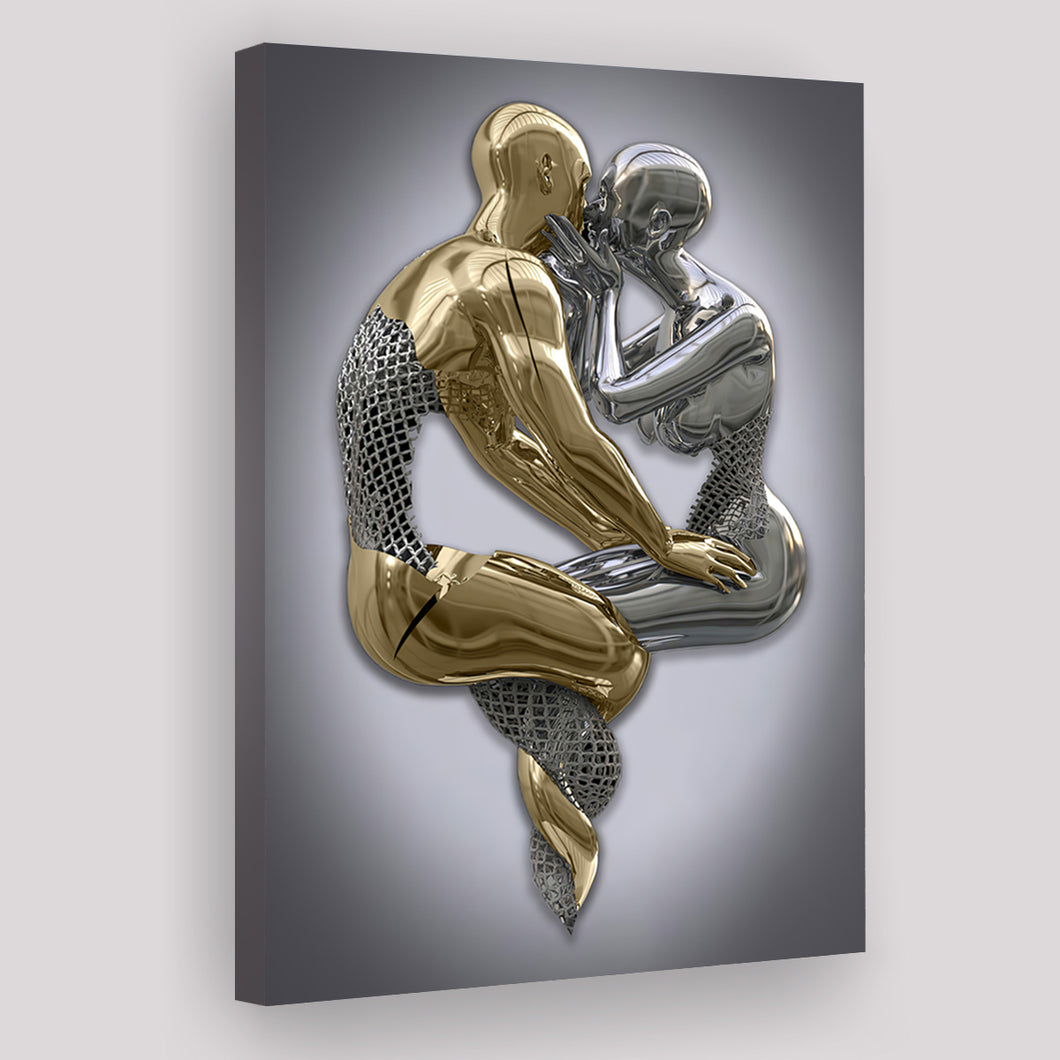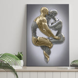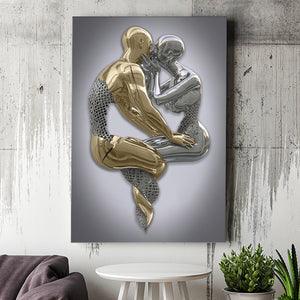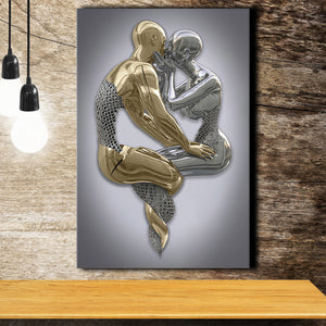 3D Effect Art Hugging Kissing Black & Gold Canvas Prints Wall Art - Painting Canvas, Wall Decor, Art Prints, Painting Prints