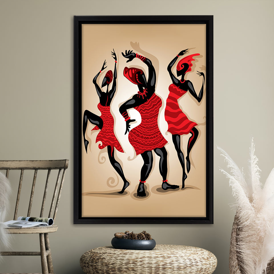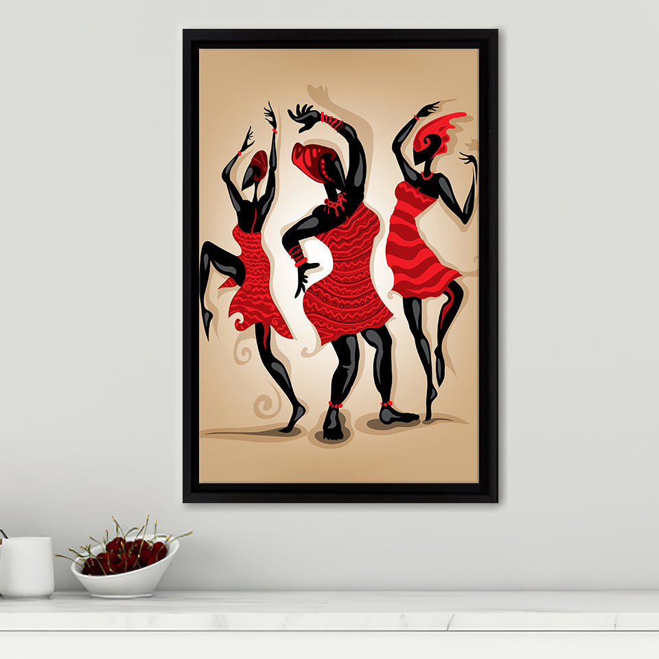 African Ladies Traditional Dancers Framed Canvas Prints Wall Art - Painting Canvas,Wall Decor, Painting Prints, Floating Frame