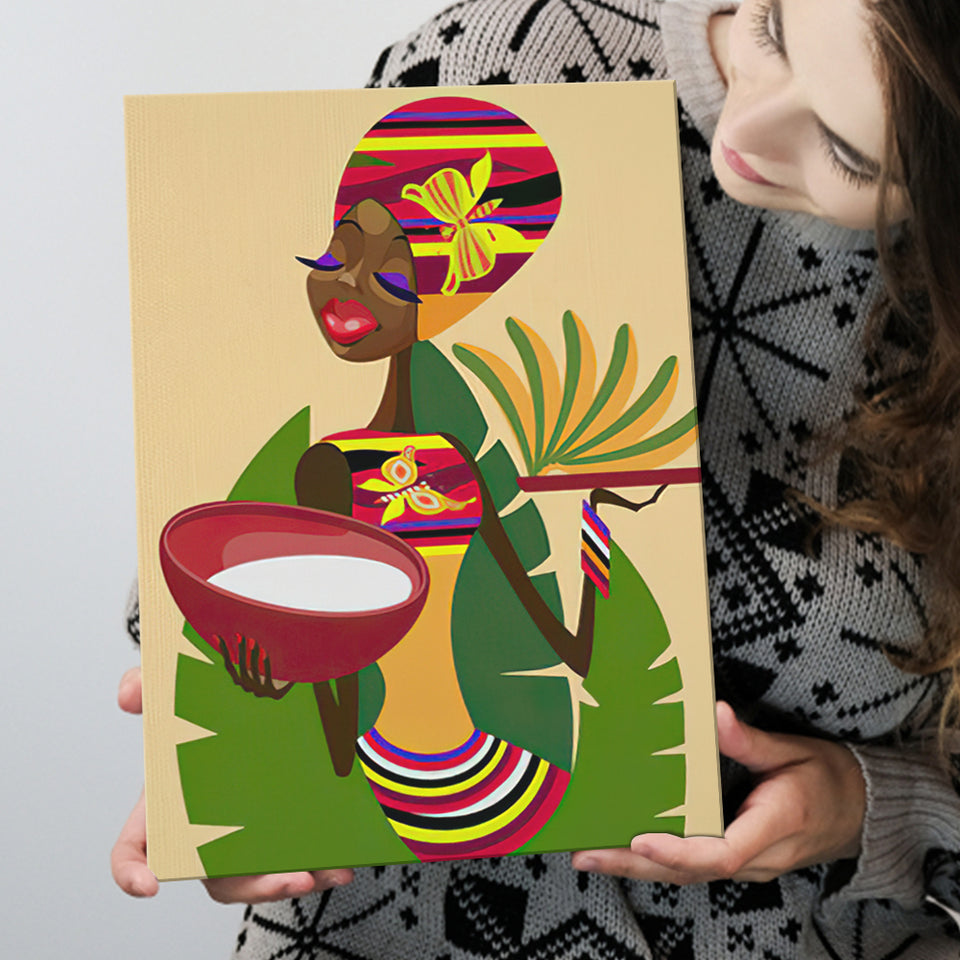 African Woman Holding Food Canvas Prints Wall Art - Painting Canvas, African Art, Home Wall Decor, Painting Prints, For Sale