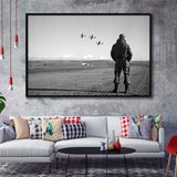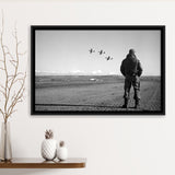 Airforce Pilot Black And White Print, Military Veterans Framed Canvas Prints Wall Art Home Decor,Floating Frame