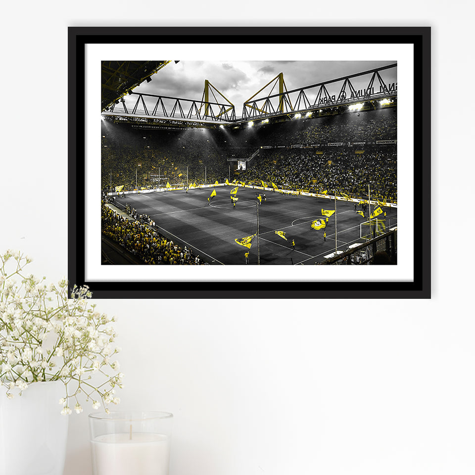 B&W Bvb Borussia Dortmund Signal Iduna Park Stadium Framed Canvas Prints Wall Art - Painting Canvas,Framed Picture,Home Art Wall Decor