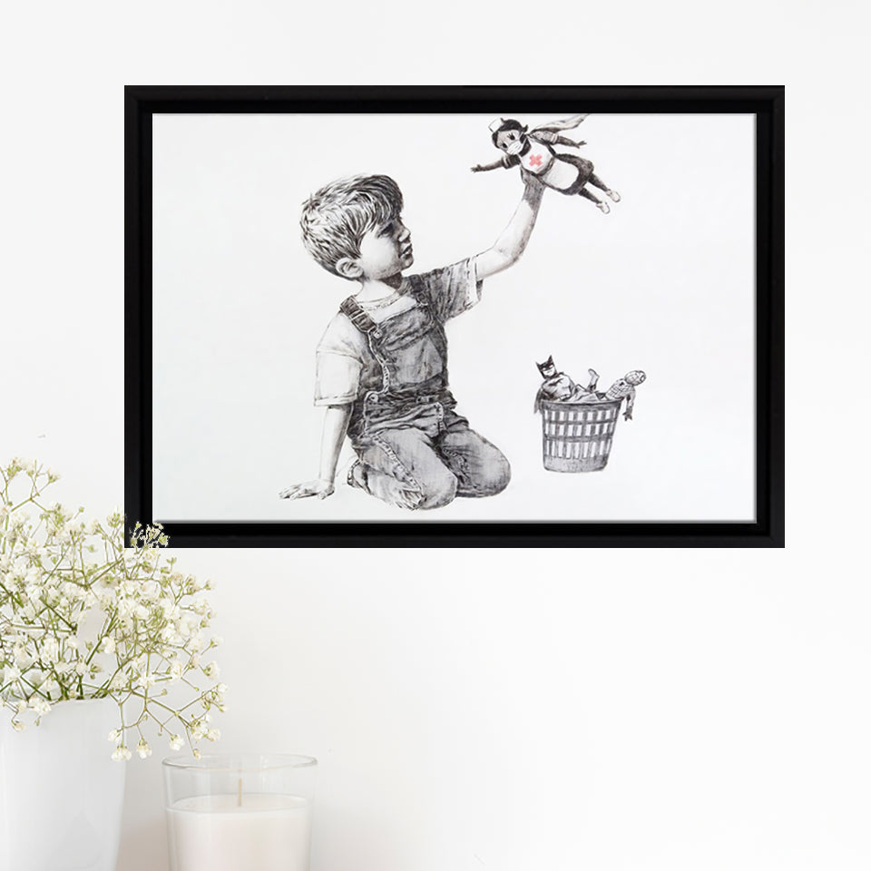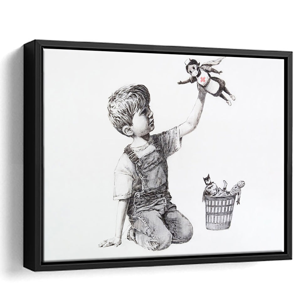 Banksy Street Art Superhero Nhs Framed Canvas Prints Wall Art - Painting Canvas, Home Wall Decor, For Sale, Floating Frame