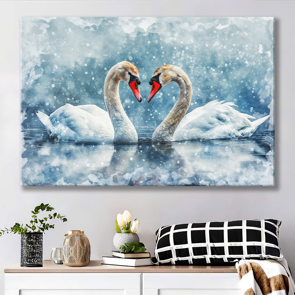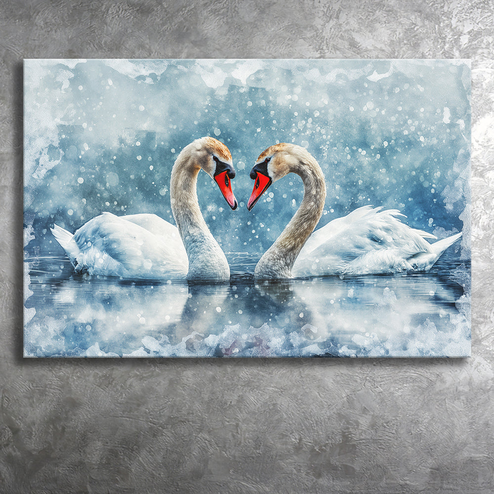 Beautiful Painting Couple  Swans in Love, Canvas Print Wall Art Home Decor, Painting Canvas Art Print