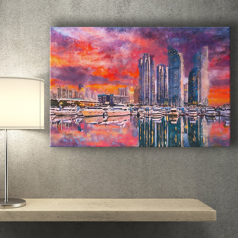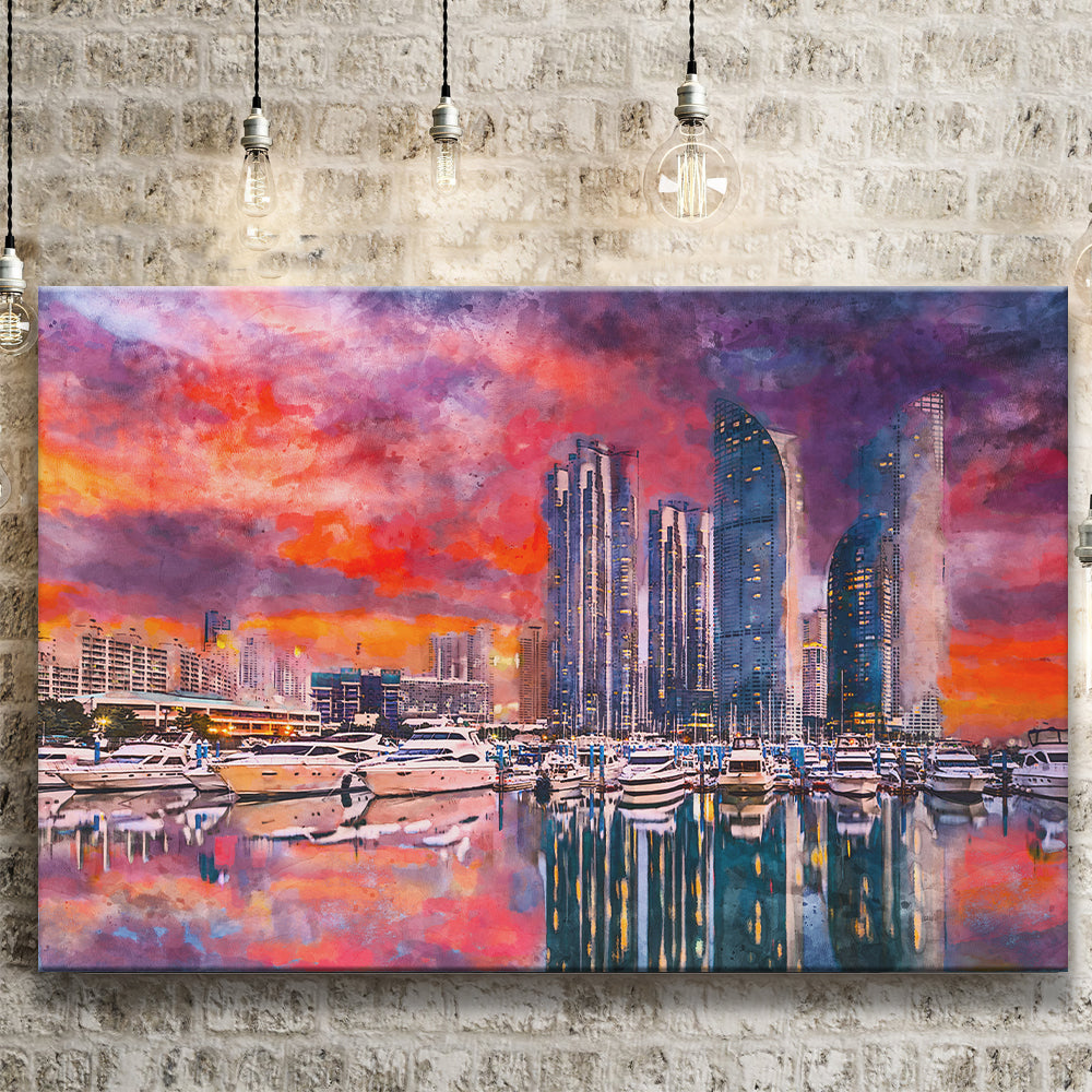 Busan South Korea City Skyline Haeundae City Art Watercolor Canvas Prints Wall Art Home Decor, Large Canvas