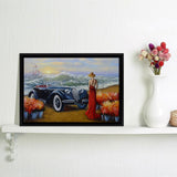 Car And Girl Painting Flowers Sea Ocean Romance Canvas Wall Art