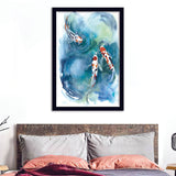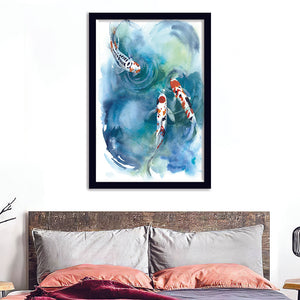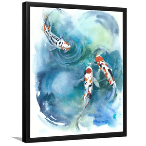 Colorful Koy Fish In Pond Watercolor Framed Wall Art Prints