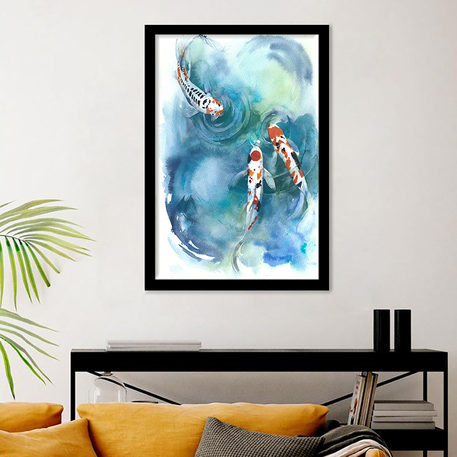 Colorful Koy Fish In Pond Watercolor Framed Wall Art Prints - Painting prints, Framed Prints,Framed Art, Prints for Sale