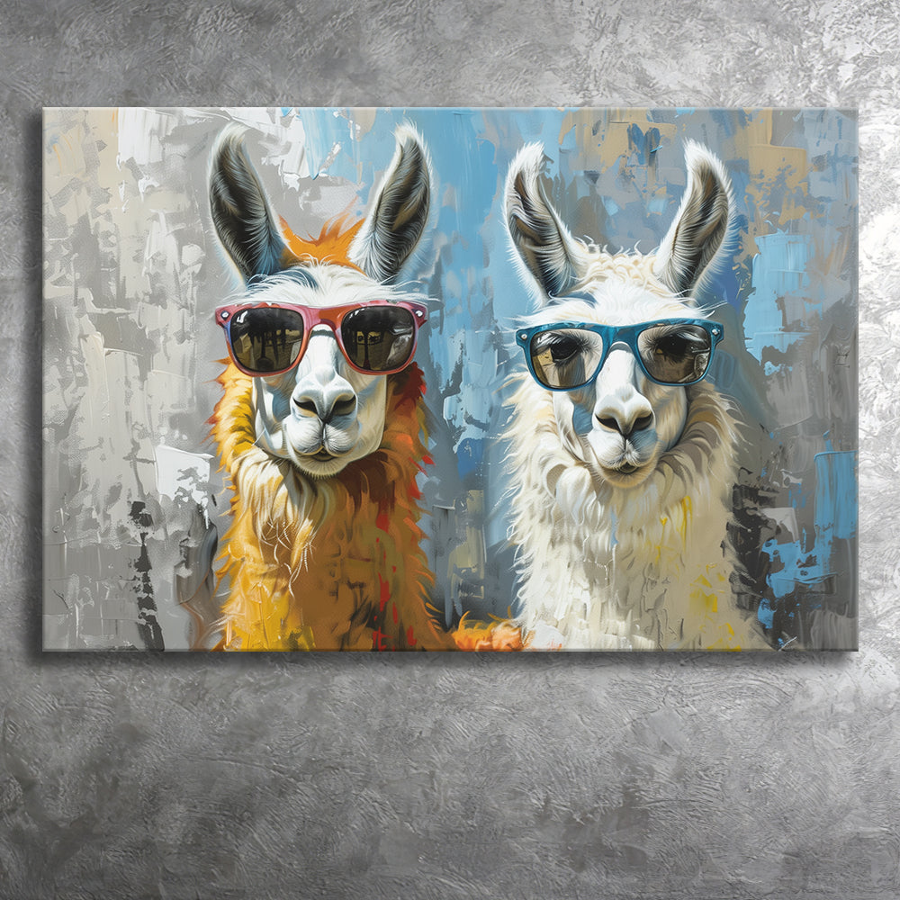 Couple Llama Wearing Sunglasses  Portrait, Canvas Print Wall Art Home Decor, Painting Canvas Art Print