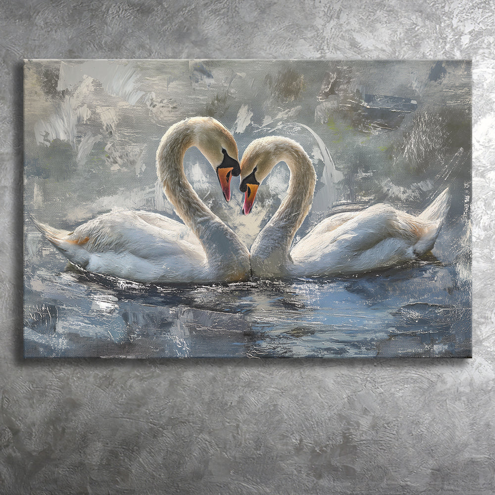 Couple Love Swans Oil Painting Love Art, Canvas Print Wall Art Home Decor, Painting Canvas Art Print