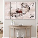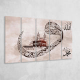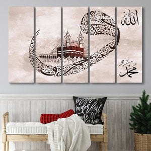 Islamic Vav And Mecca Arabic Calligraphy 5 Piece B Canvas Prints Wall Art, Multi Panels,Large Canvas