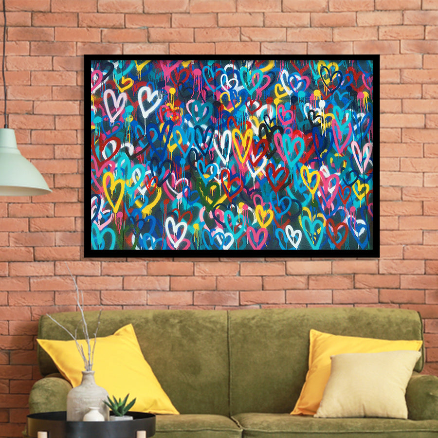 Love Hearts Graffiti Framed Art Prints Wall Decor - Painting Prints, Home Wall Art, For Sale, Framed Pictures
