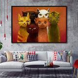 Lovely Cats Painting, Cat Colorful Wall Art Framed Canvas Prints Wall Art Home Decor,Floating Frame