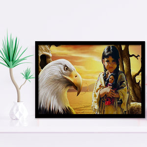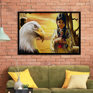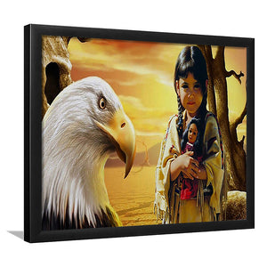 Native Indian Girl Eagle American Indian Framed Art Prints Wall Decor - Painting Prints,Framed Picture, Home Decor, For Sale