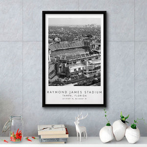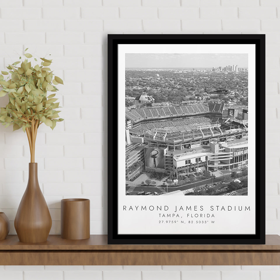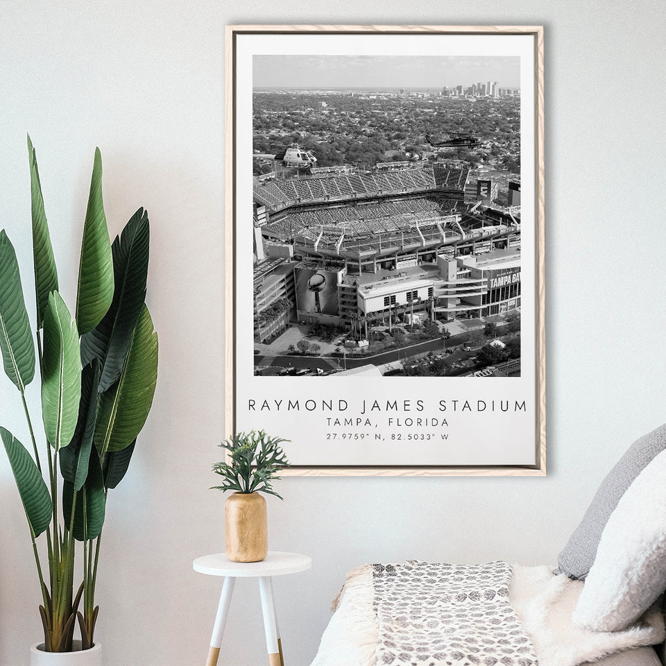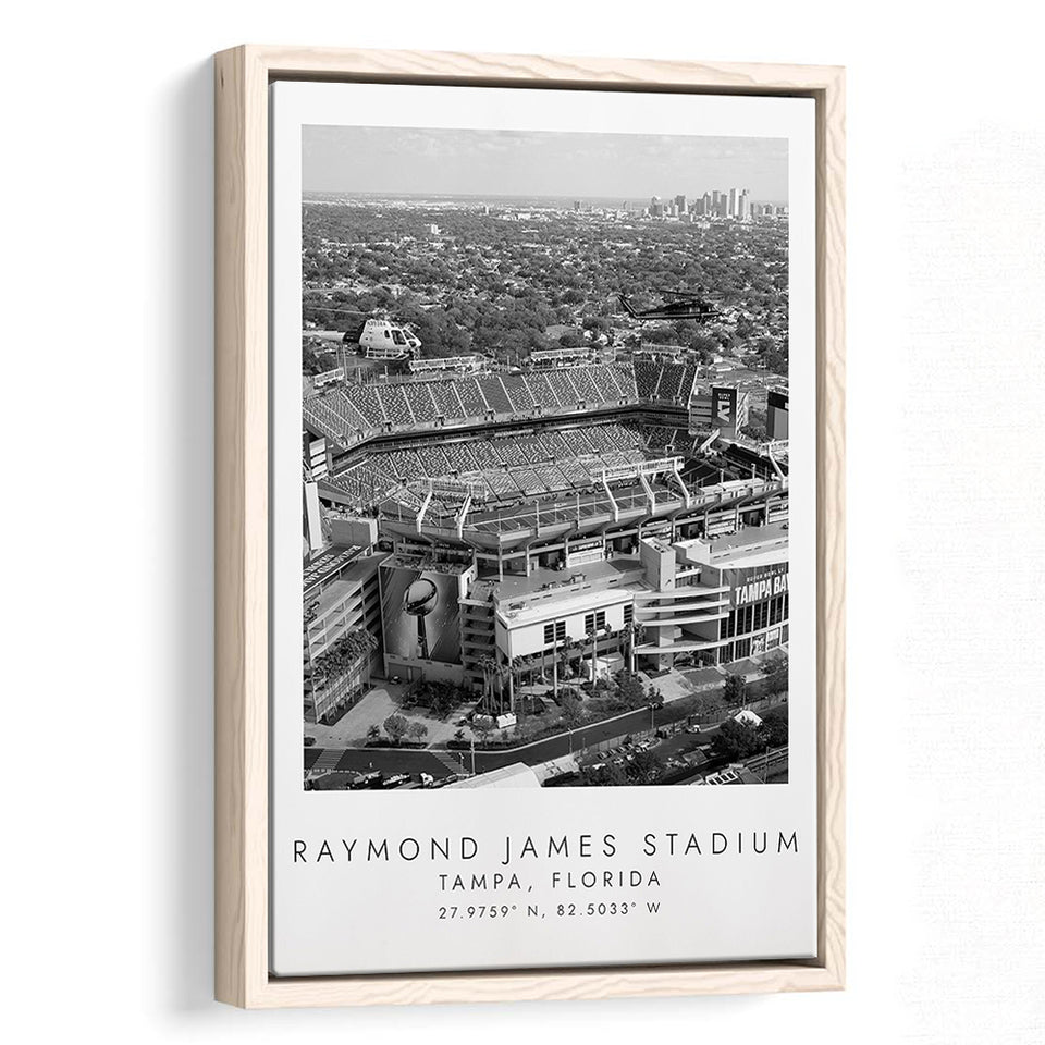 Raymond James Stadium Tampa Bay Buccaneers, Stadium Wall Art For Football Lovers, B&W, Floating Framed Canvas Print