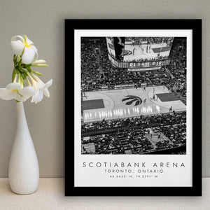 Scotiabank Arena Toronto Raptors, Stadium Print For Basketball Lovers, Black And White, Framed Art Print Wall Decor