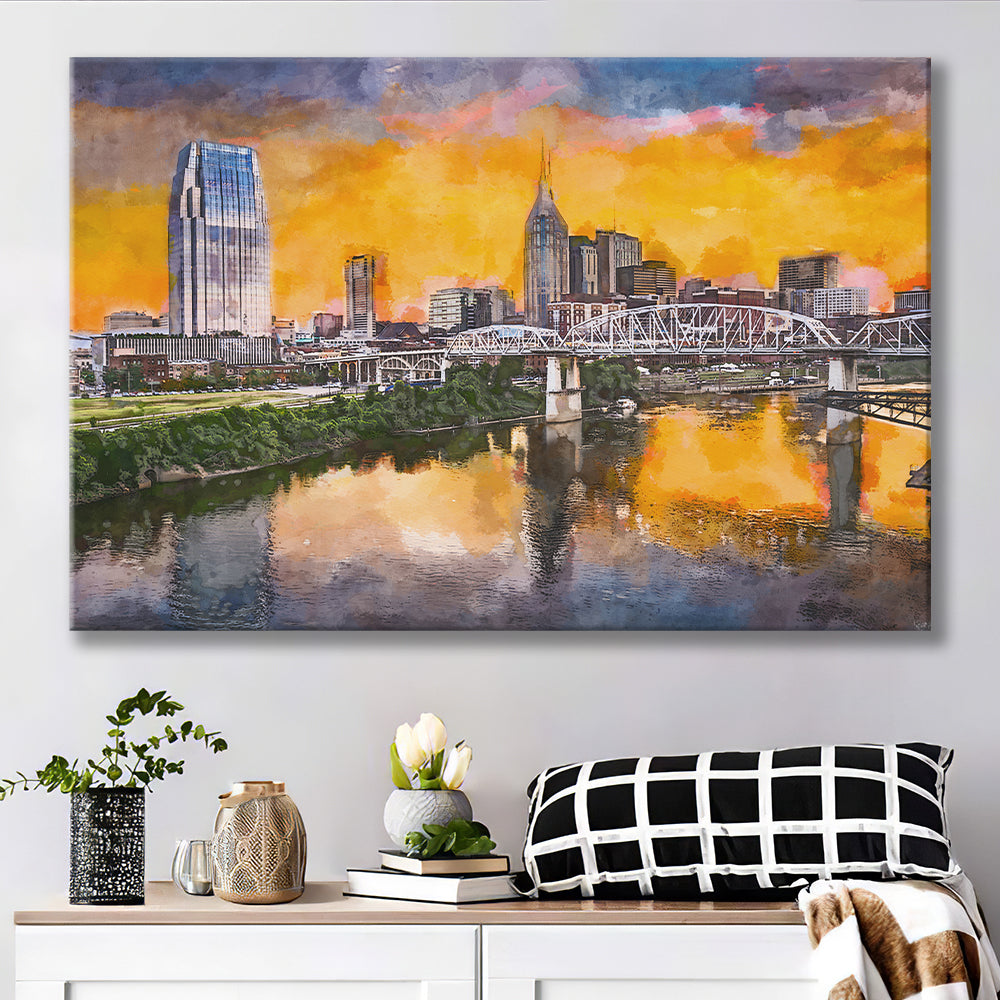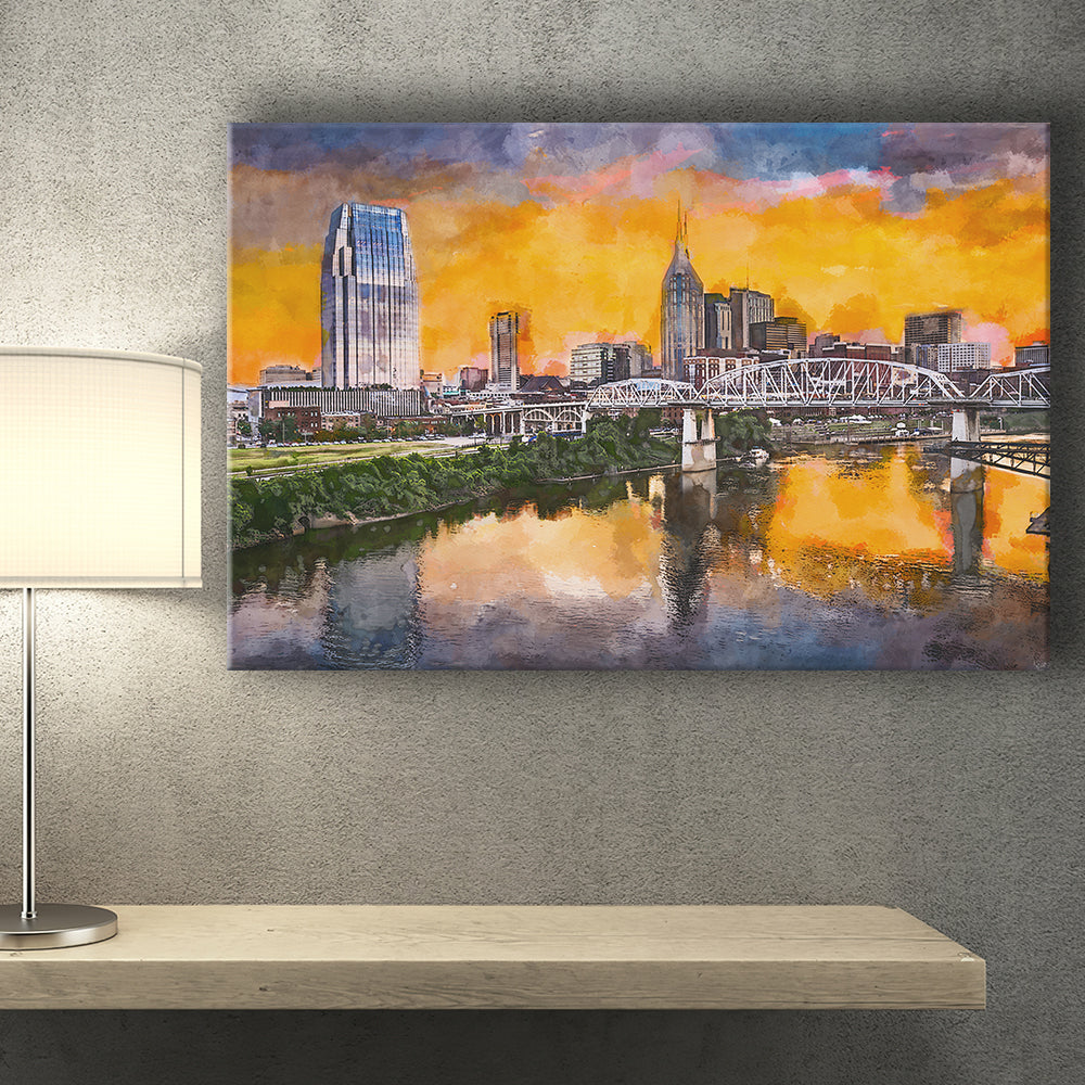 Skyline Downtown Nashville Tennessee Usa City Art Watercolor Canvas Prints Wall Art Home Decor, Large Canvas