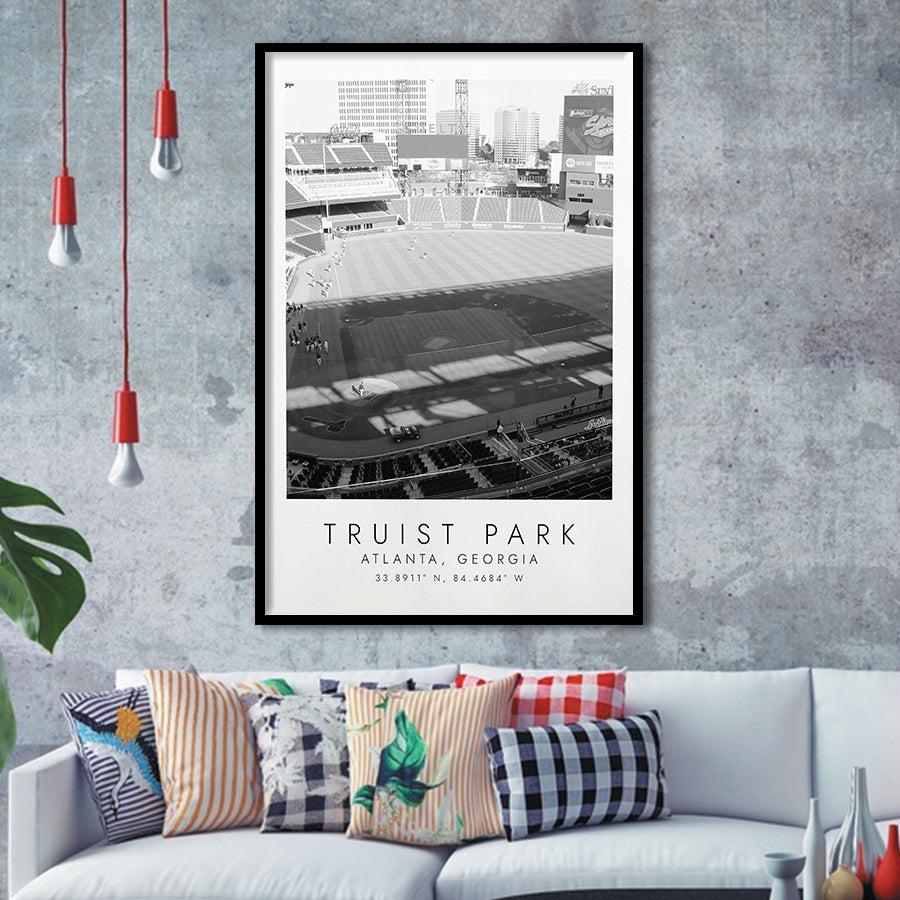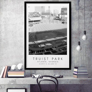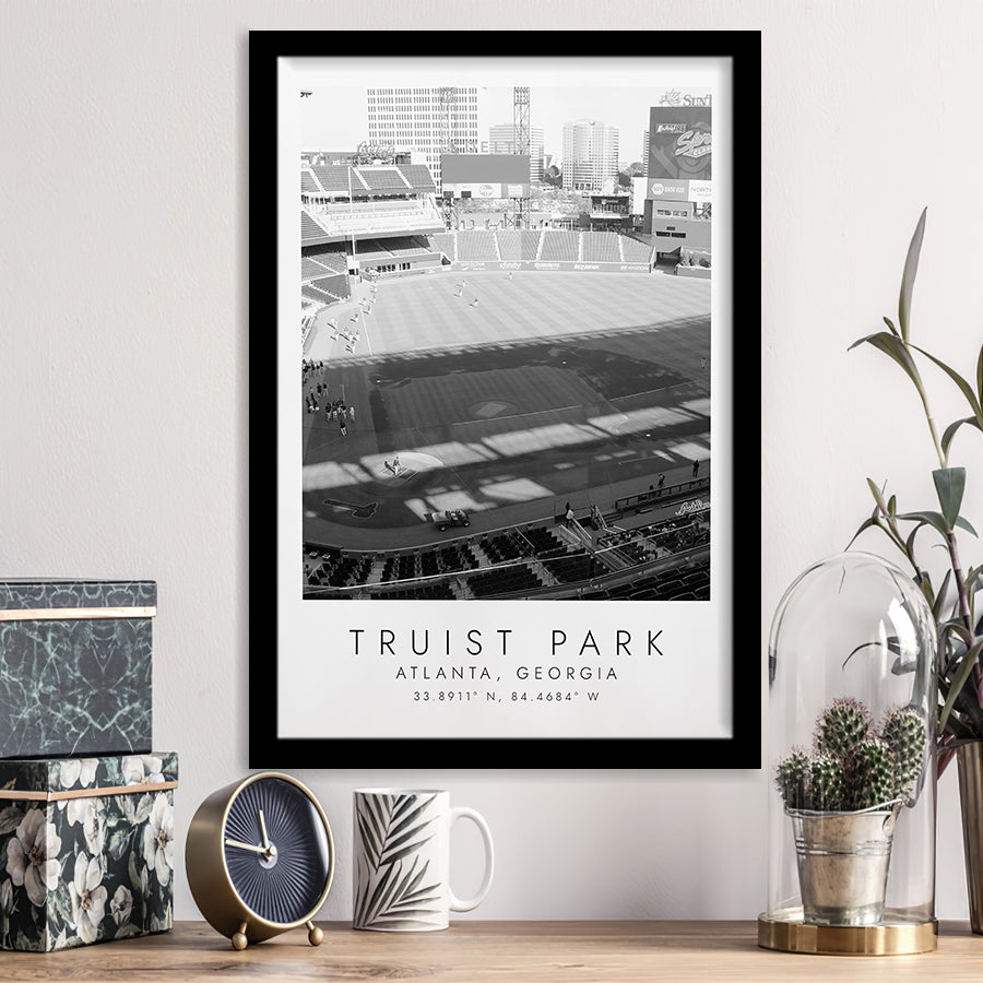 Truist Park Atlanta Braves, Stadium Print For Baseball Lovers, Black And White, Framed Art Print Wall Decor