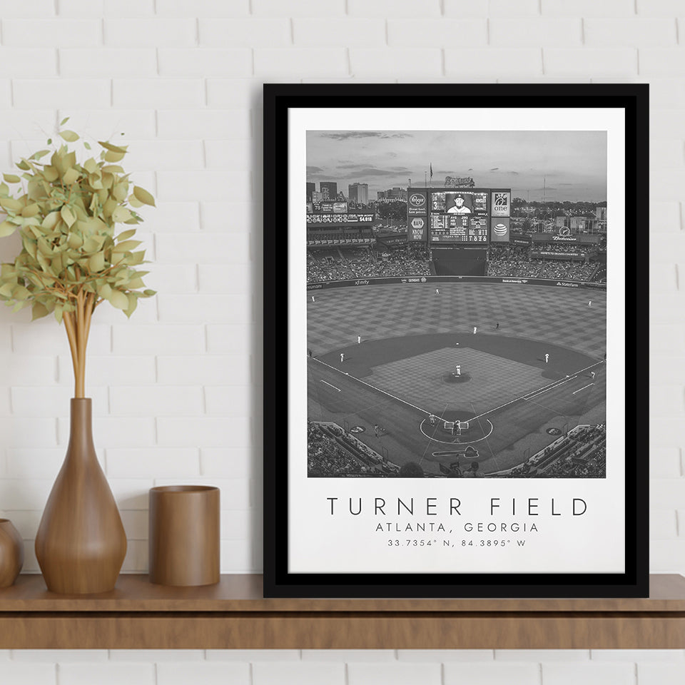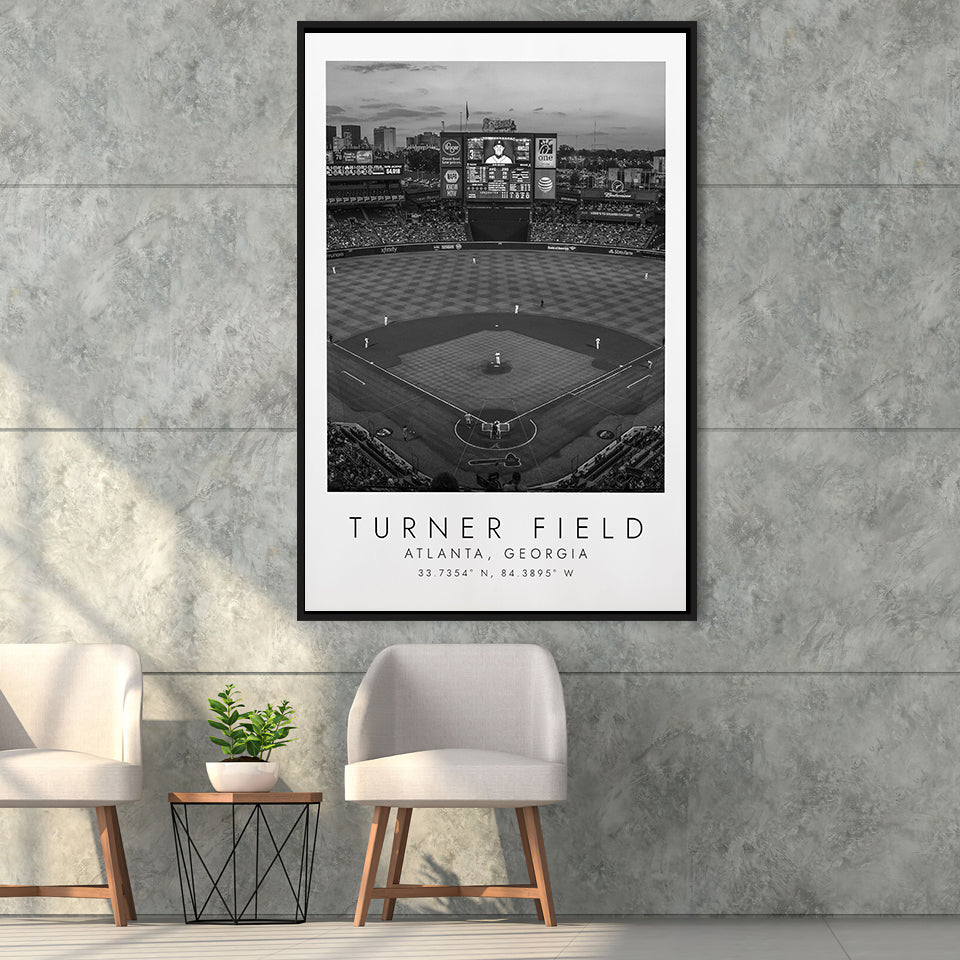 Turner Field Atlanta Braves, Stadium Wall Art For Baseball Lovers, B&W, Floating Framed Canvas Print