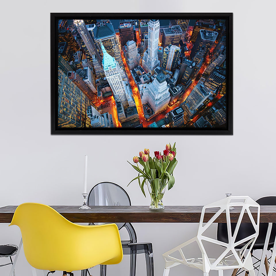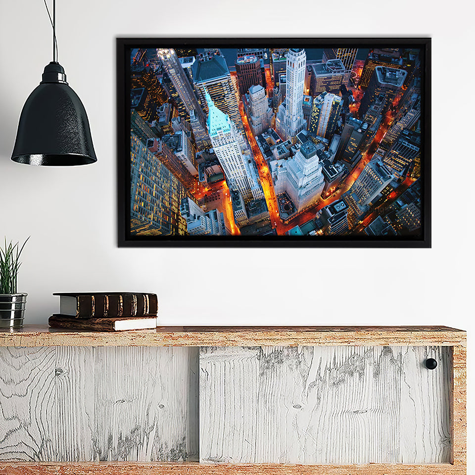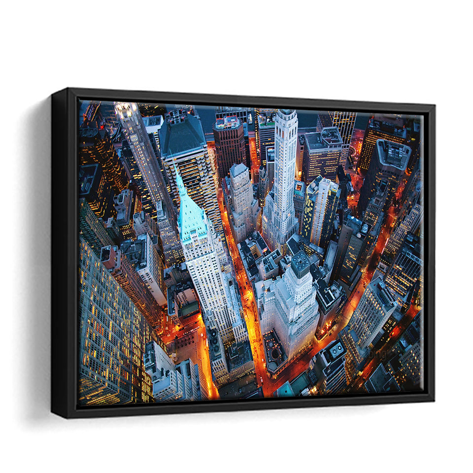 Usa City New York Buildings Manhattan Walls Skyscrapers Street Framed Canvas Wall Art - Framed Prints, Prints for Sale, Canvas Painting