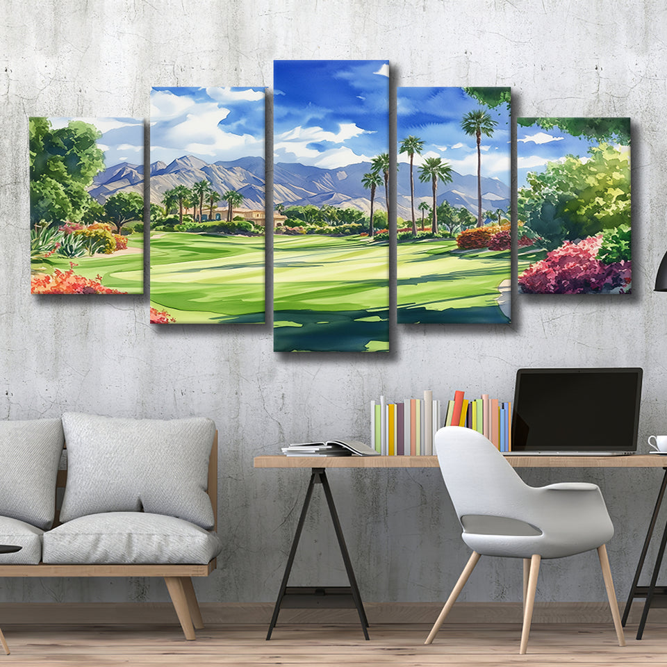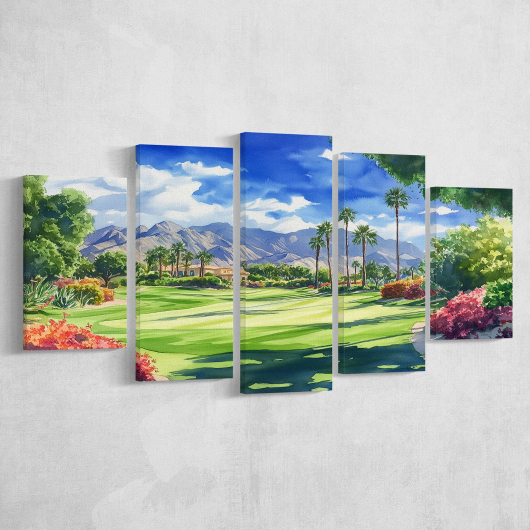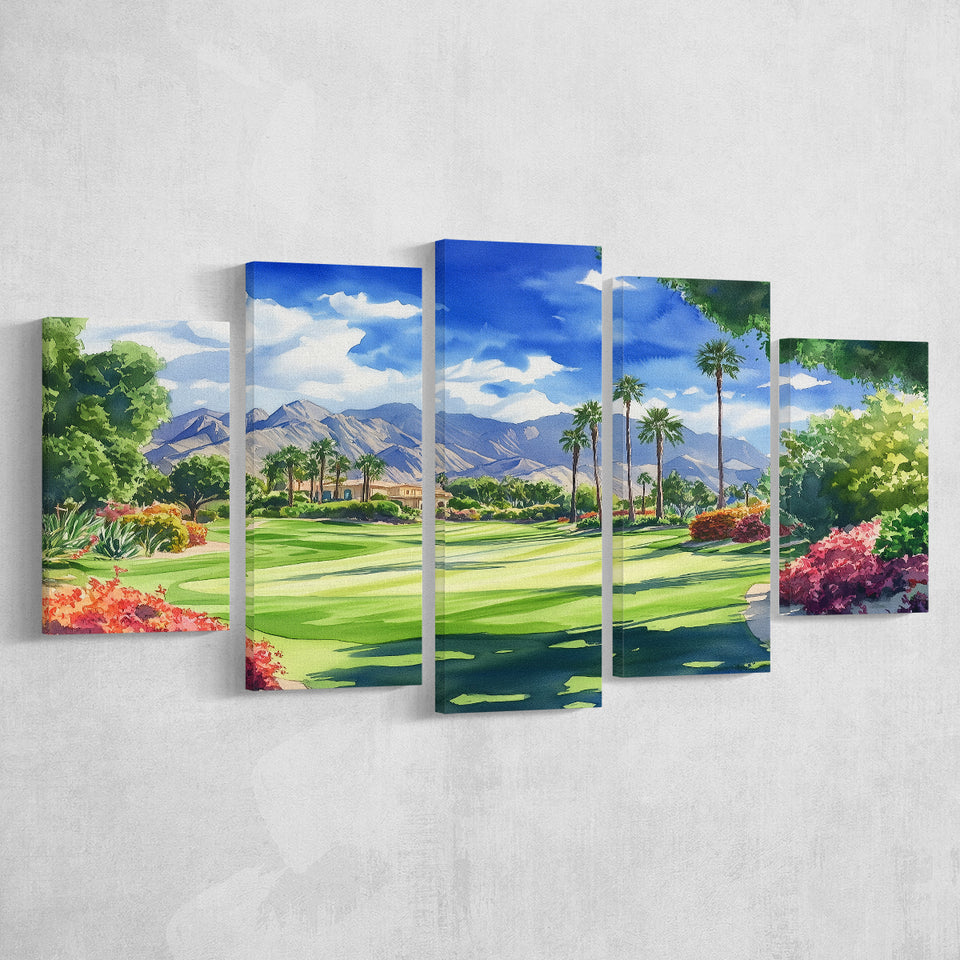Watercolor Painting Tamarisk Country Club Hole 17 V1, Golf Art Print, Mixed 5 Panel, Canvas Prints Wall Art