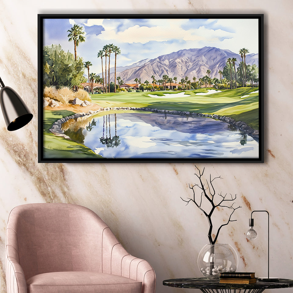 Watercolor Painting Tamarisk Country Club Hole 17 V2, Golf Art Print, Gift for him, Framed Canvas Prints Wall Art